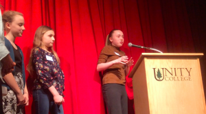 Three students were chosen to represent the 6th grade in receiving the Teddy Roosevelt Maine Conservation Award for our class. Along with their teachers, Mrs, Nye and Mrs. Seaver, they travelled to Unity College on Friday, April 13th, for a roundtable discussion and award luncheon sponsored by Maine Woods Forever. They received the award for their work on the Goosefare Brook last fall and asked the students to speak about what they had done.